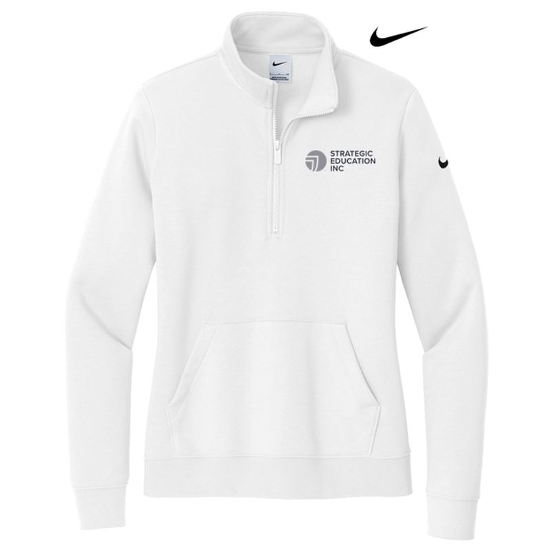 NEW SEI Nike Ladies Club Fleece Sleeve Swoosh 1/2-Zip - White